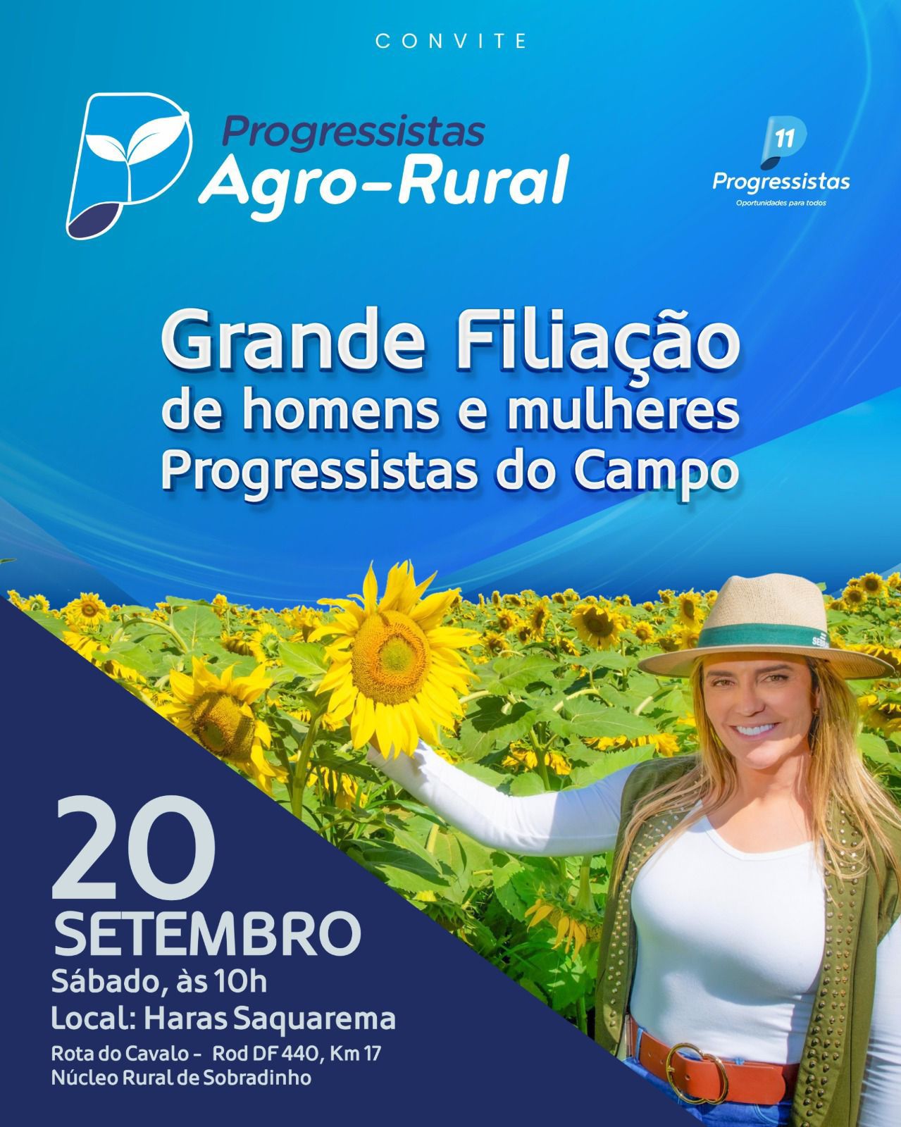 Para fortalecer o setor agropecuário e as comunidades rurais do Distrito Federal, o Partido Progressistas do Distrito Federal lança a Comissão Progressista Agro-Rural. O intuito é propor soluções que atendam e melhorem o setor, além de intermediar a aproximação entre quem produz e o poder público. Será neste sábado (20), a partir das 10h, no Haras Saquarema, em Sobradinho.