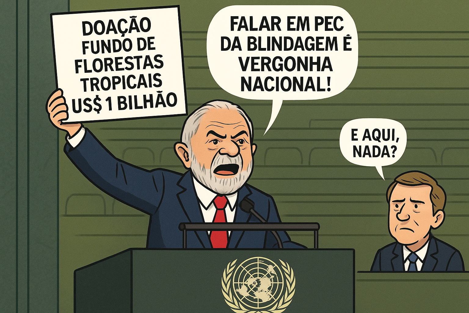 O presidente Luiz Inácio Lula da Silva voltou de Nova York após três dias de discursos na ONU que tiveram mais pose e marketing do que resultados reais. Em sua fala final, Lula aproveitou o palco internacional para atacar a chamada PEC da Blindagem, arquivada no Senado, classificando-a como “vergonha nacional”. Na prática, o presidente usou o espaço mais uma vez para transformar qualquer pauta que não lhe favoreça em inimiga da sociedade.